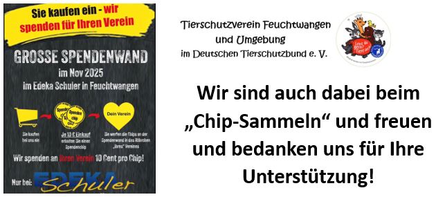 diese Seite soll eine Information über den Tierschutzverein Feuchtwangen und Umgebung e.V. im Deutschen Tierschutzbund geben und neue Möglichkeiten eröffnen, Tiere zur Vermittlung schnell und umfassend vorzustellen, es sollen aber auch Fundtiere veröffentlicht werden und es sollen hier auch vermisste Tiere ausgeschrieben werden können (siehe unter "Vermisst"). Wer sein Tier vermisst, wird gebeten dies ebenfalls möglichst mit einem Bild und einer Beschreibung mitzuteilen -